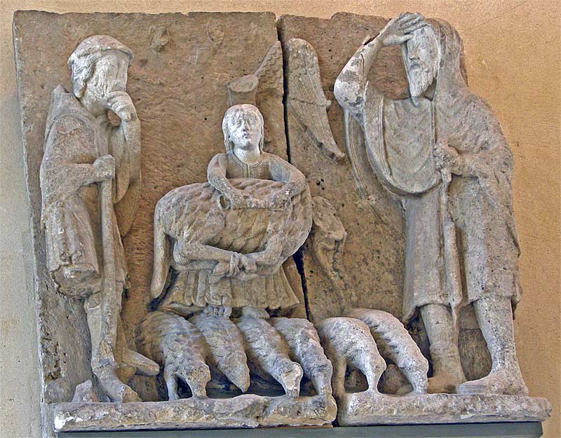 And more stone carving at Chartres Cathedral show the angel appearing to the shepherds. The sheep in both seem unconcerned and continue grazing.